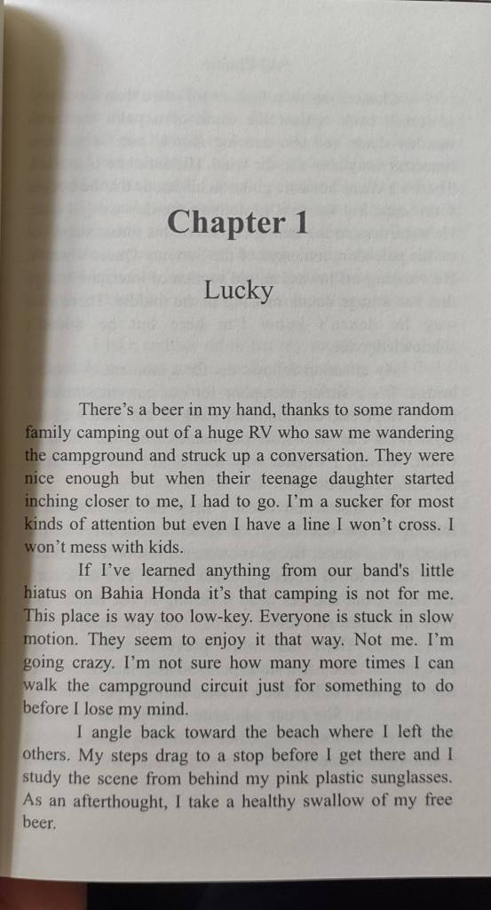 For me as the writer, one of my favorite aspects of this story is the dynamic among the characters, specifically the twins, Chance and Lucky, and their drummer, Johnny. Johnny has become a bit of a fan favorite from the readers who have given me feedback. Something about his quiet and reserved way really caught him attention, not to mention the way he’ll tell it like it is to the twins, even though he’s a hundred or so years younger than they are. Johnny is really a bit of glue that keeps Chance from diving off the deep end of his despair and keeps Lucky from going supernova at the wrong times. I think the following excerpt really perfectly catches the vibe among the three of them.